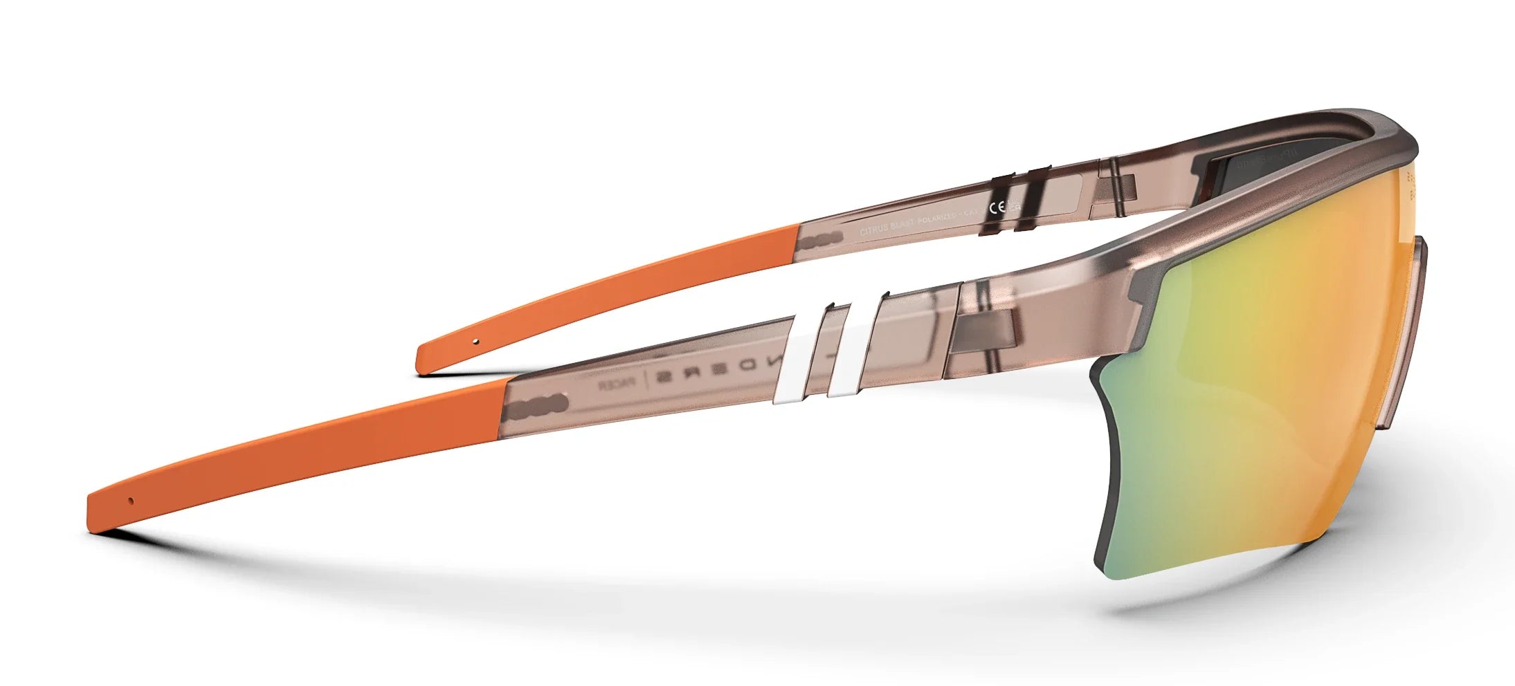 Style for miles. ‘Pacer Citrus Blast’ has a look that draws you in (champagne and crystal gray seriously pop!) and a performance that pulls no punches. Our premium, polarized PureBlend Lens boasts a new wraparound design for full protection and superior optical clarity. A super lightweight design maximizes comfort, and the rubberized, adjustable nose pads and temple tips counter heat, sweat, and humidity with a no-slip fit.